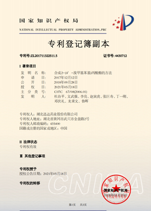 公司擁有一支高素質(zhì)科研隊(duì)伍,具備專業(yè)而高效的研發(fā)能力。近幾年,共取得科技成果30項(xiàng),其中9項(xiàng)獲國(guó)家發(fā)明專利,2項(xiàng)獲湖北省科技進(jìn)步獎(jiǎng),開發(fā)新產(chǎn)品8個(gè),綠色合成、手性合成和催化等技術(shù)引領(lǐng)行業(yè)發(fā)展。主要銷往歐美、日本、韓國(guó)、中東、印度等40多個(gè)國(guó)家和地區(qū)。